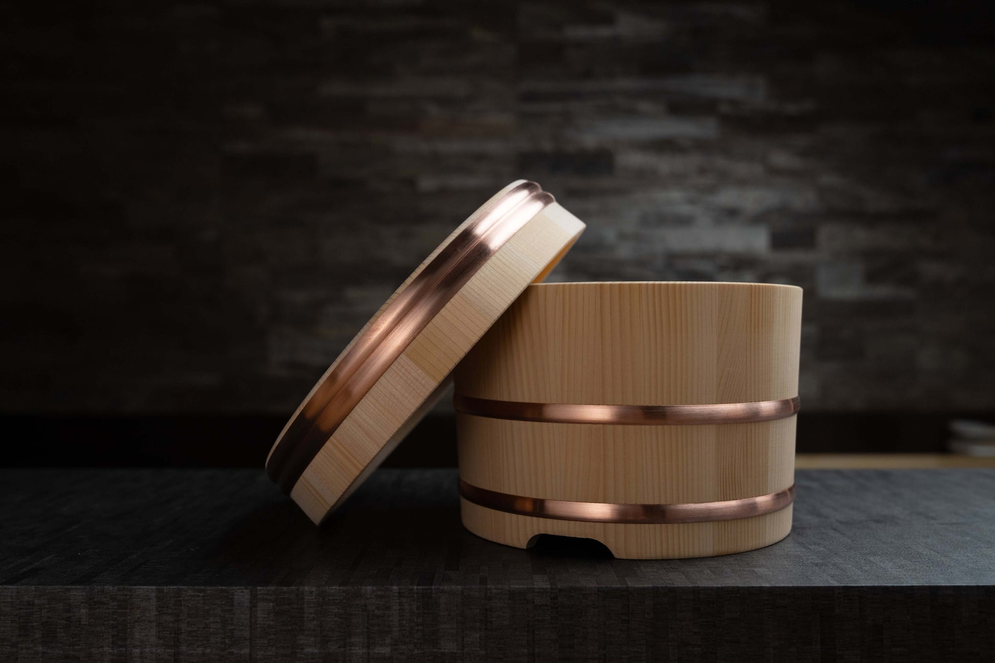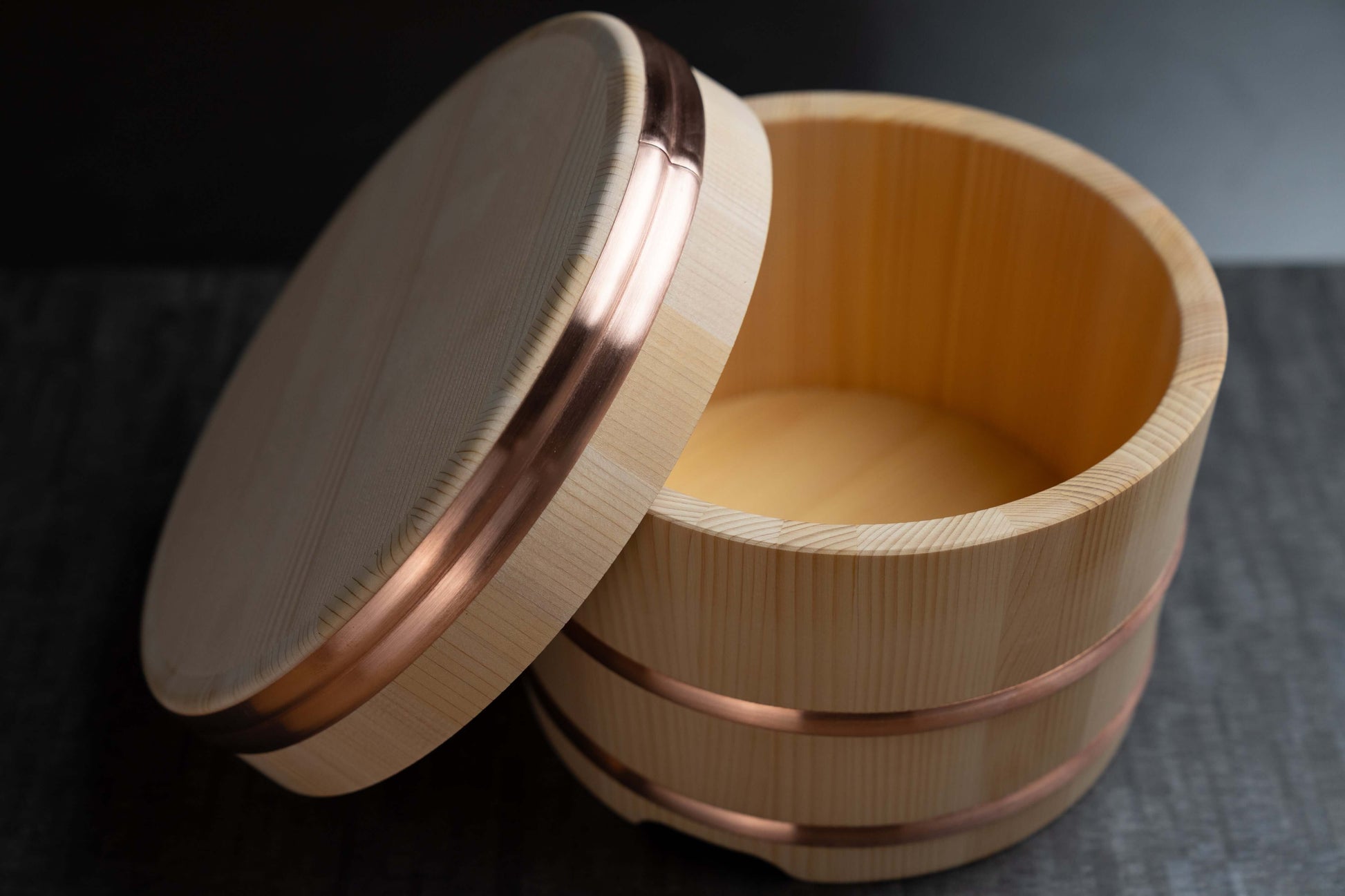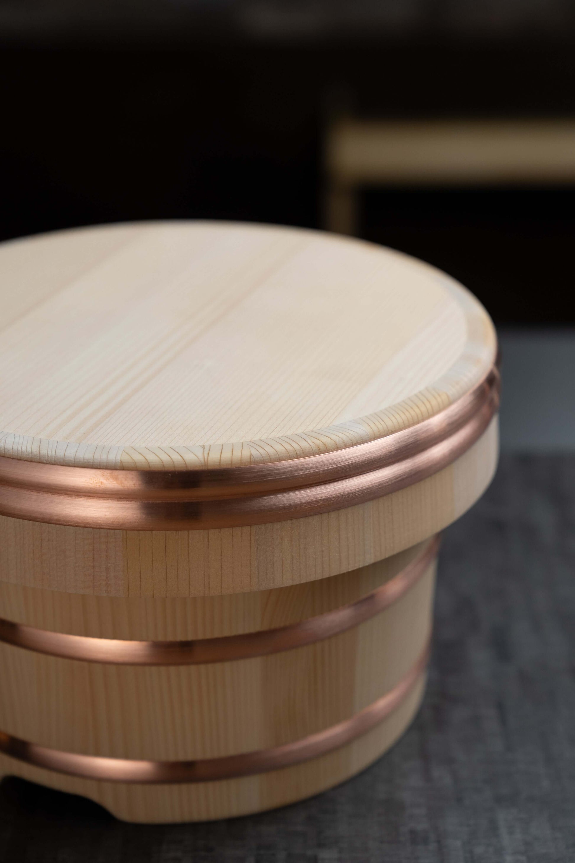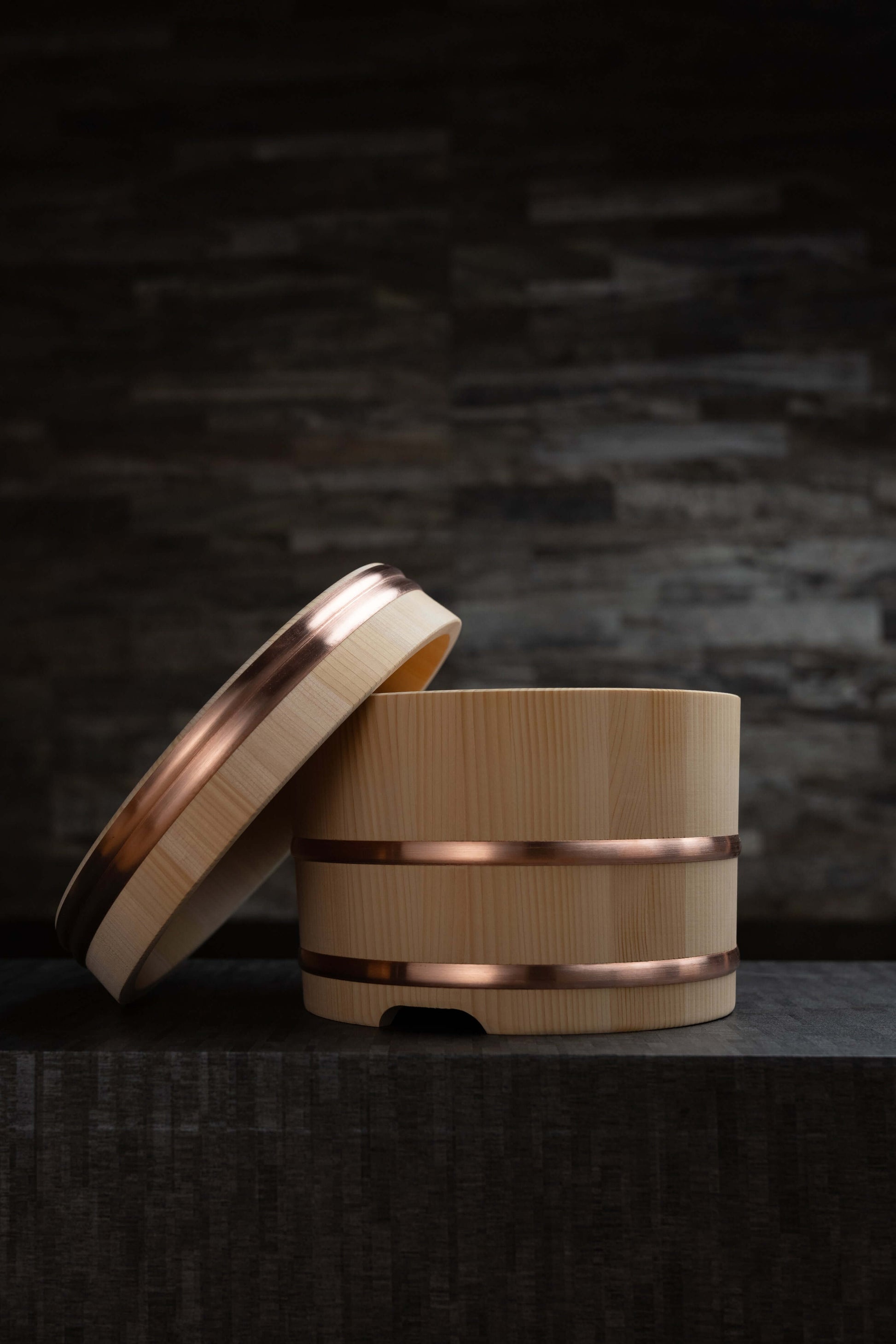 • Madera Kiso Sawara de primera calidad: conocida por su resistencia natural al agua y sus propiedades antibacterianas, la madera Kiso Sawara ayuda a mantener el arroz en la textura ideal al tiempo que le infunde una fragancia sutil y natural.