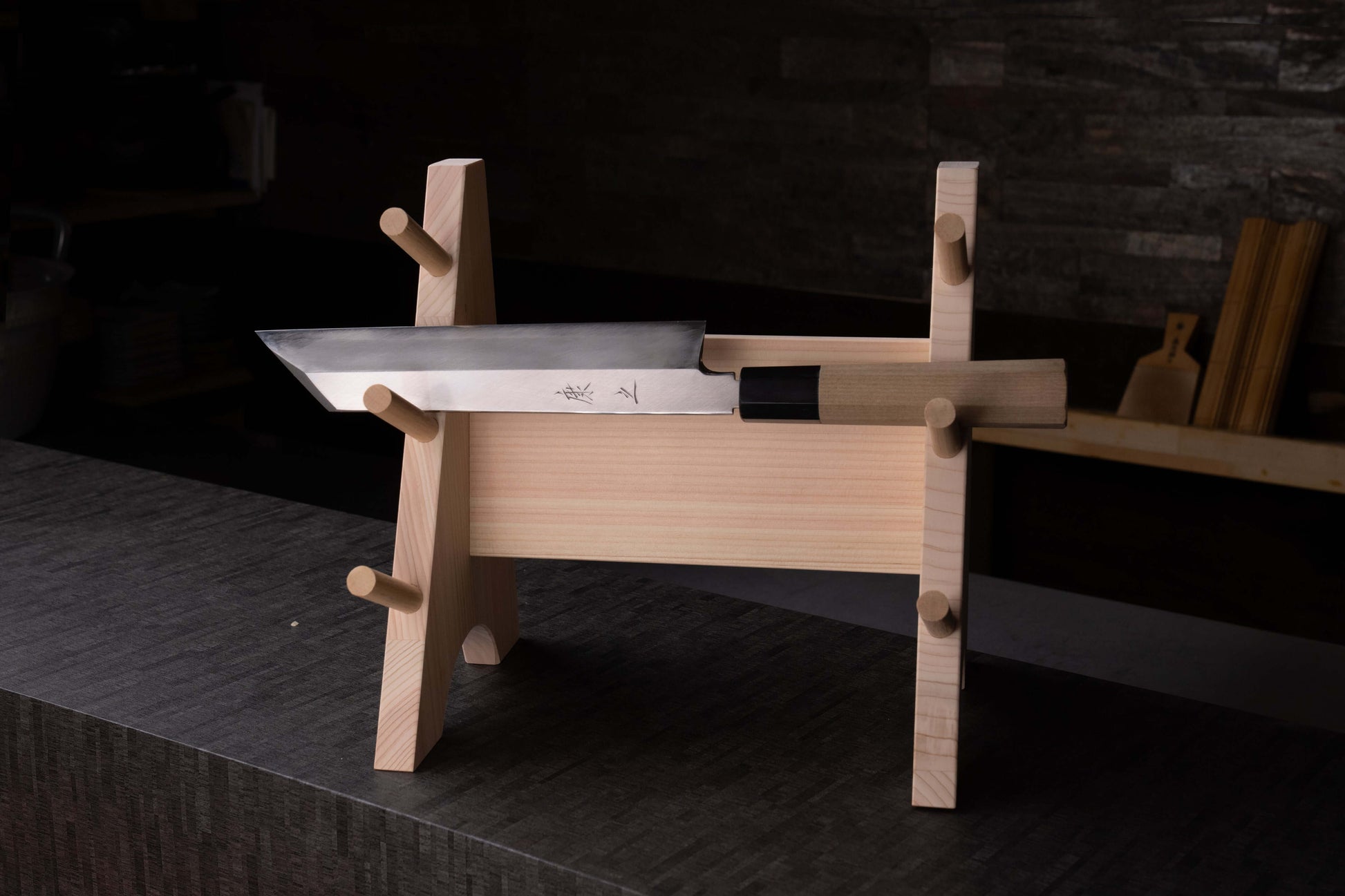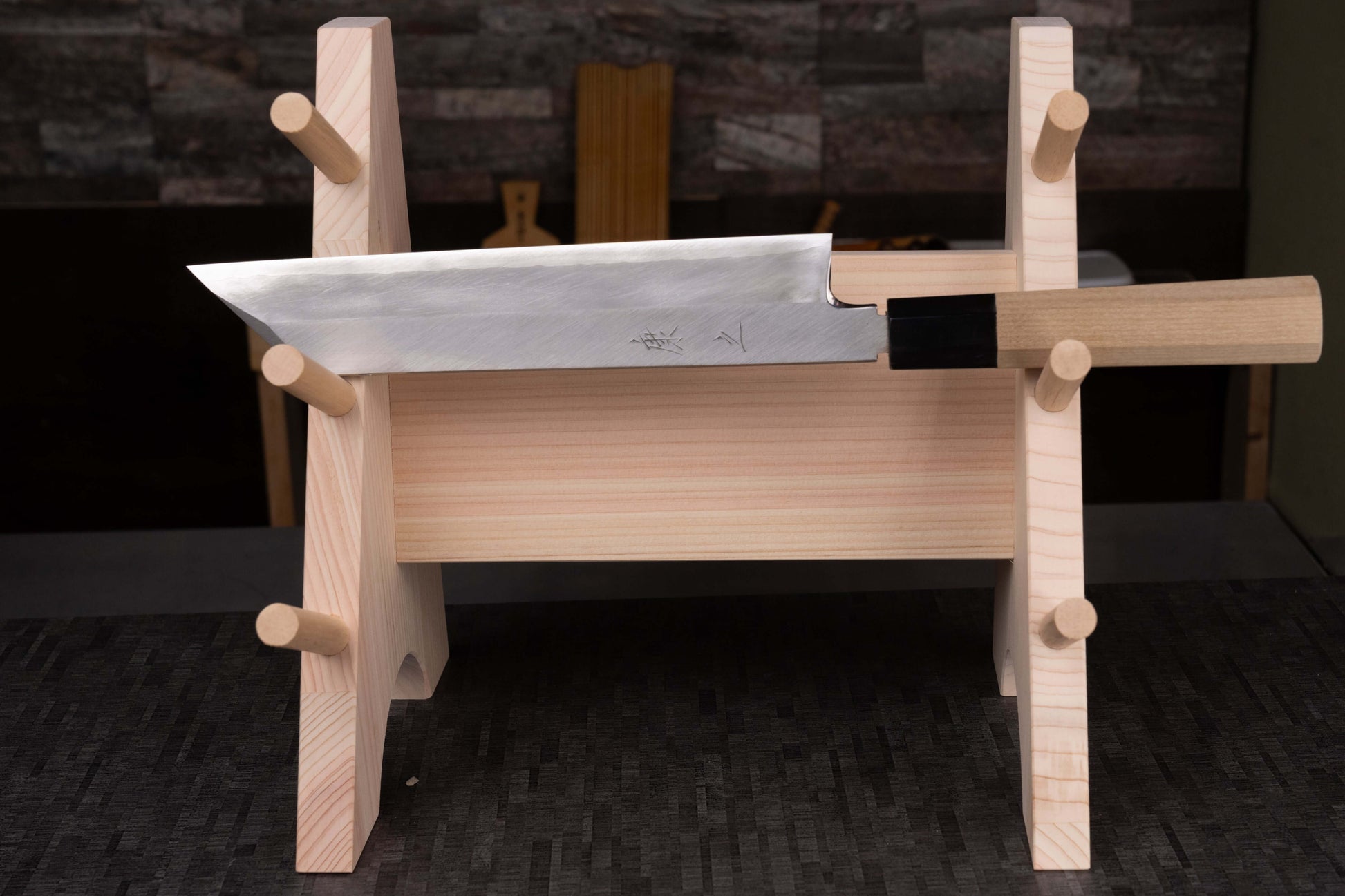 This one-of-a-kind 210mm carving knife is forged for the art of precise, decorative preparation. With its straight-edged, single-bevel blade, it excels at shaping vegetables, crafting intricate garnishes, and elevating plating aesthetics. Hand-forged in Sakai, it brings delicacy and control into harmony.